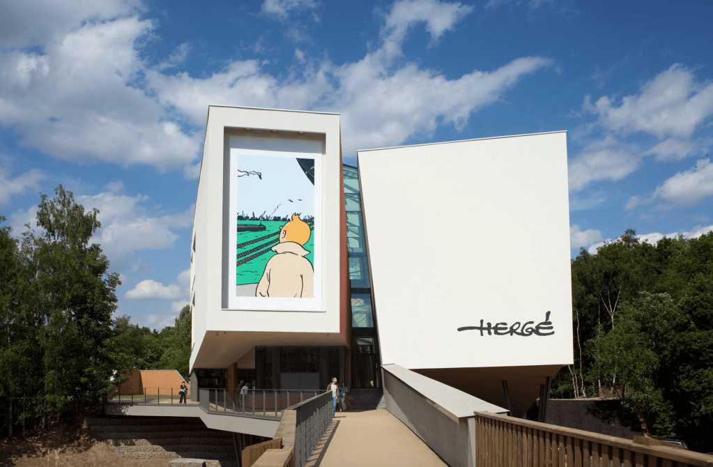 Situé à Louvain-la-Neuve, petite ville universitaire à 34 km au sud de Bruxelles, l’édifice aux formes asymétriques est niché dans le petit Bois de La Source. La création de l’architecte français Christian de Portzamparc capture tout à fait l’essence de l’œuvre d’Hergé et invite tout de suite au dépaysement.
