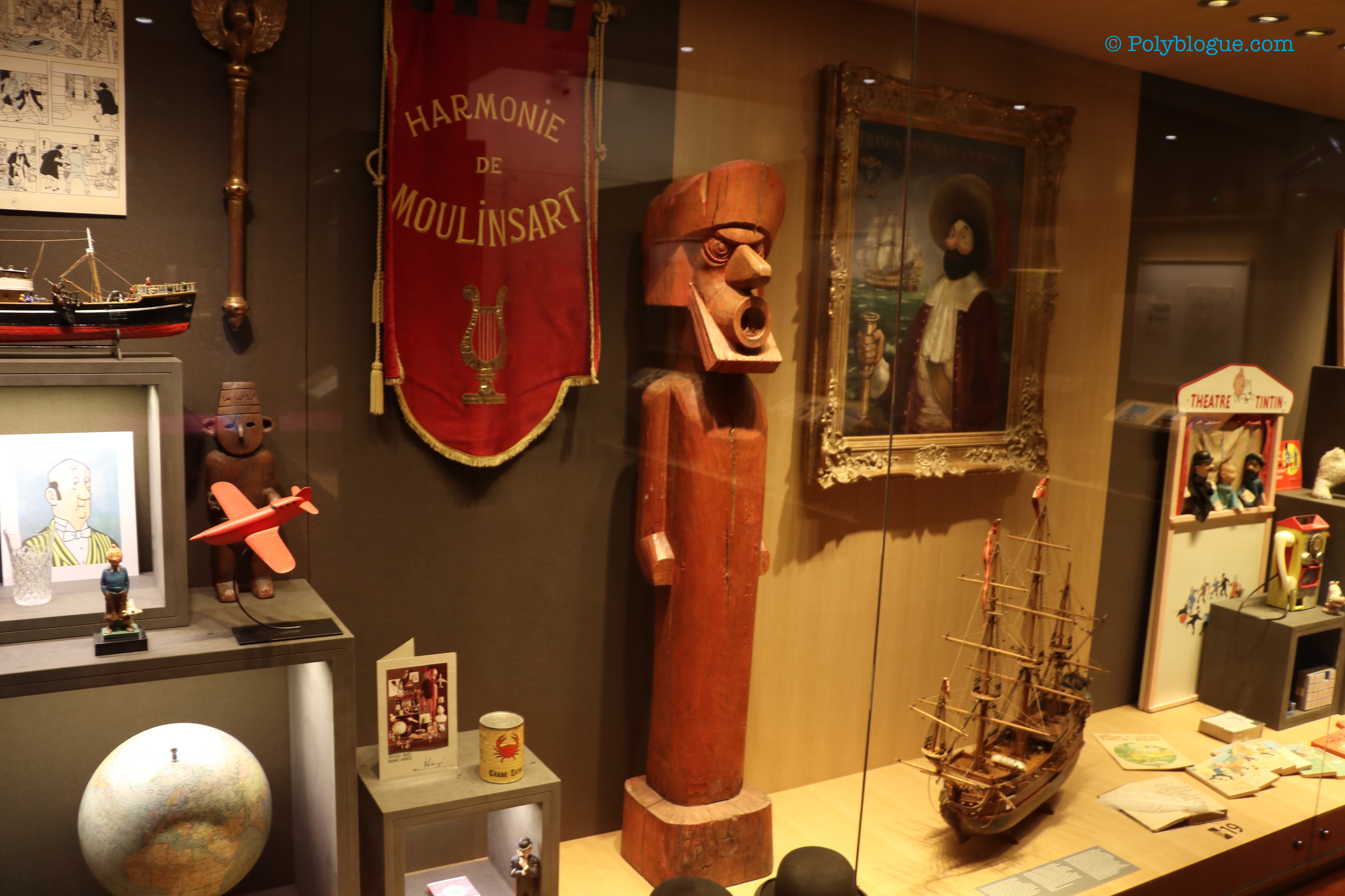 Puis, on replonge dans l’univers mystérieux du créateur belge. On y découvre des trésors tirés des aventures de Tintin : ici, une bouteille du fameux poison qui rend fou, là l’ombre du Yéti, un peu plus loin le totem dédié au Chevalier de Hadoque et le sous-marin qui a mené nos aventuriers à la découverte de la Licorne.