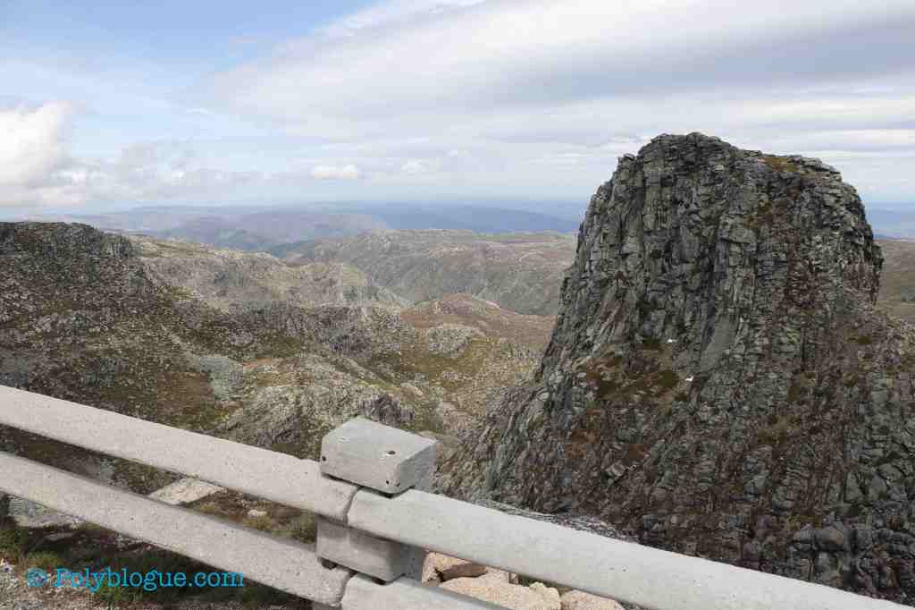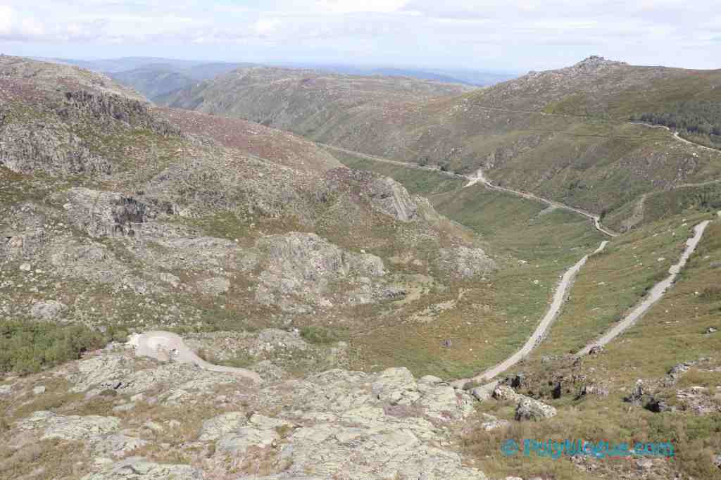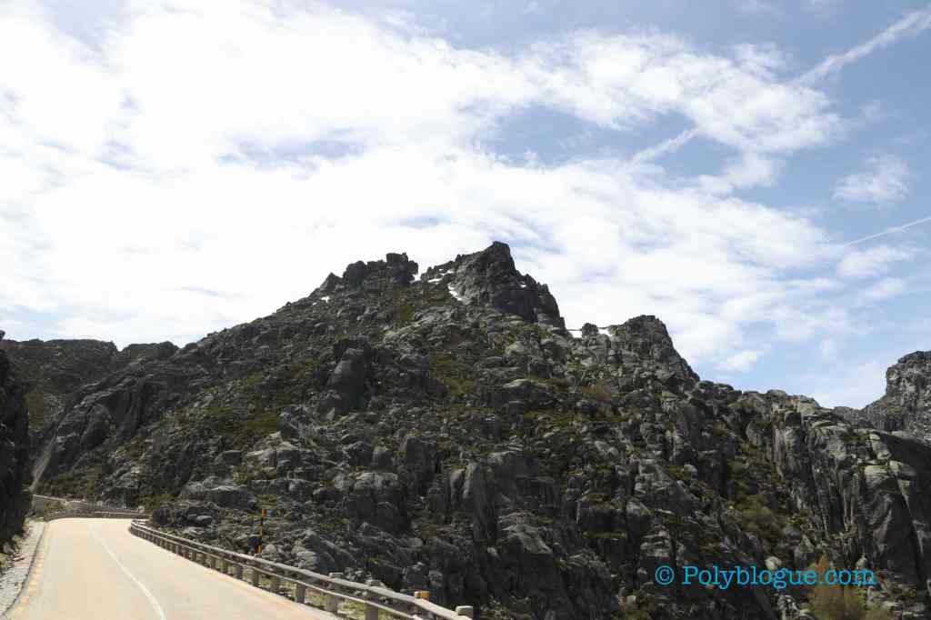 Attention ça grimpe sérieusement. Mais la petite Peugeot 208 n’est pas effarouchée. Moi, un peu plus, car légèrement sujet au vertige, je me retrouve au beau milieu d’abruptes falaises et de pics vertigineux. Une chance, la route est belle et il y a des garde-fous partout, ce qui n’a pas toujours été le cas au Portugal. La montée se fait donc assez sereinement et les nombreux espaces prévus le long de la route nous permettent de nous arrêter et de profiter de ce majestueux paysage.