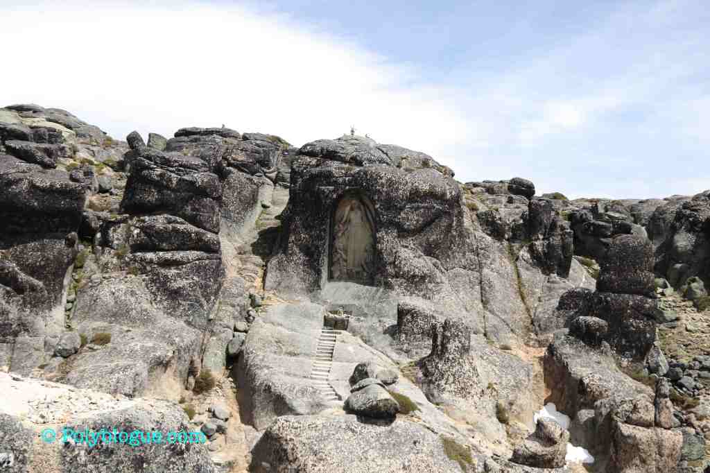 Nous sommes en présence de la patronne des bergers, la Senhora da Boa Estrela, ou si vous préférez Notre-Dame de la bonne étoile. Cette sculpture a été érigée en 1946 et fait plus de sept mètres de haut. Je ne suis pas religieux, mais je ne peux qu’être renversé par la dévotion des gens qui ont créé ceci à plus de six mille pieds d’altitude.