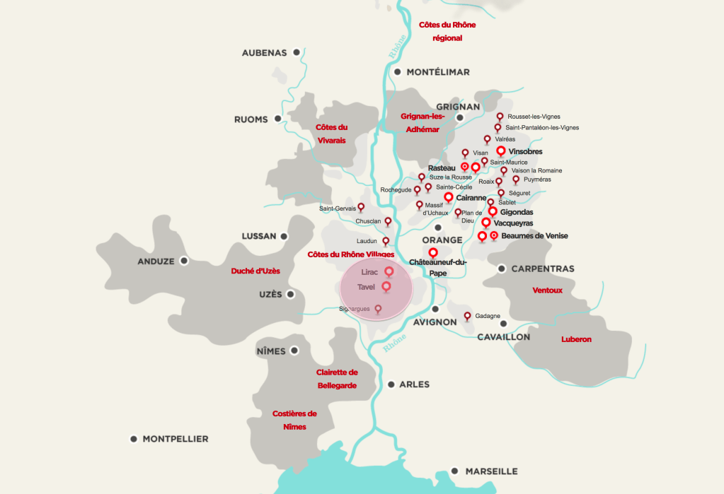 Bon, commençons par le commencement. De quel vin parle-t-on au juste? Il se trouve que si vous vous promenez sur la rive droite du Rhône, au nord d’Avignon, vous tomberez sur Tavel, la seule appellation de la vallée qui est entièrement consacrée aux vins rosés. Présentement, sept rosés de cette appellation sont disponibles à la SAQ, que ce soit en ligne ou sur les étagères. Les plus récents arrivés se retrouveront en succursales d’ici le 18 juillet.