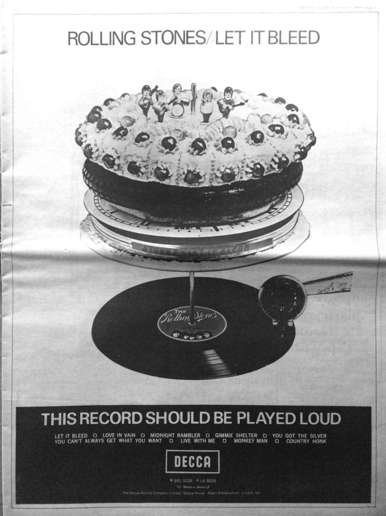 Publicité lors du lancement de Let It Bleed en décembre 1969. Notez l’avertissment.