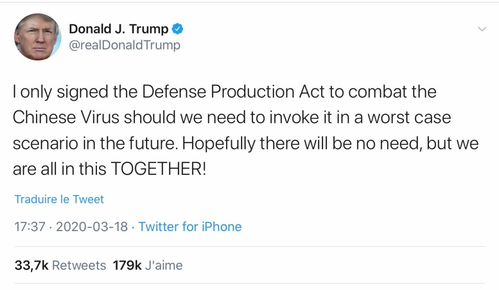 Au Land of the free, la chose orange qui occupe le poste de président parle du chinese virus en référence à la COVID-19. Un membre de son administration fait encore mieux en évoquant le kung-flu devant une journaliste… d’origine asiatique.